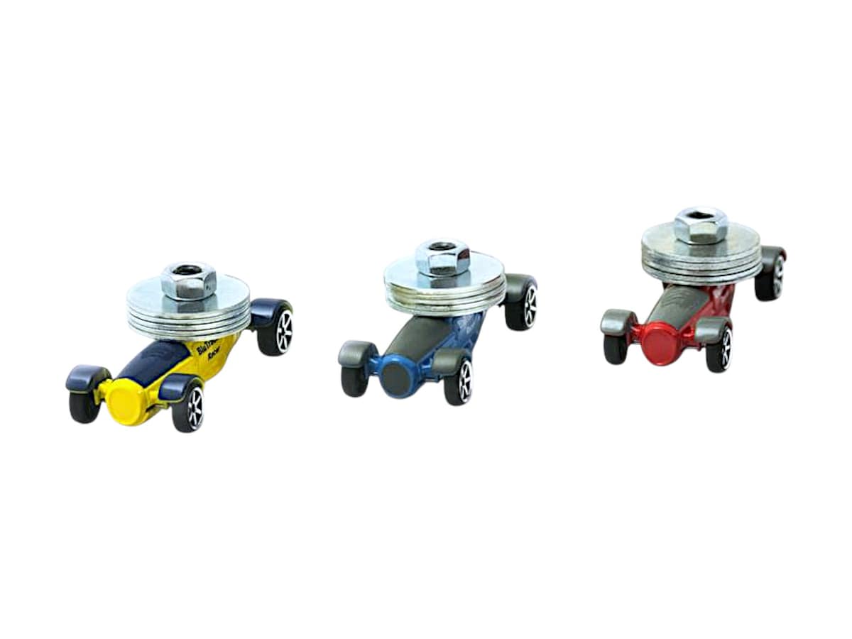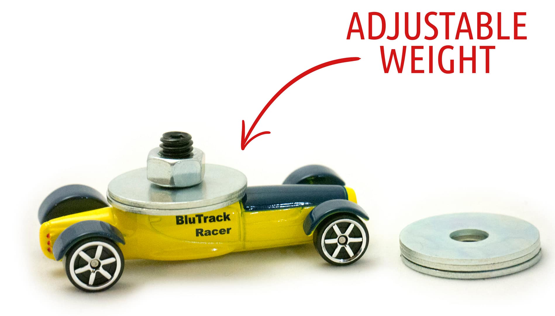 Blu Track® Physics Cars are intended to be used to teach physics and force and motion studies. What makes the Blu Track® Physics Cars unique is the ability to change the mass up to 150%. Users can easily adjust the weight by adding or subtracting washers.